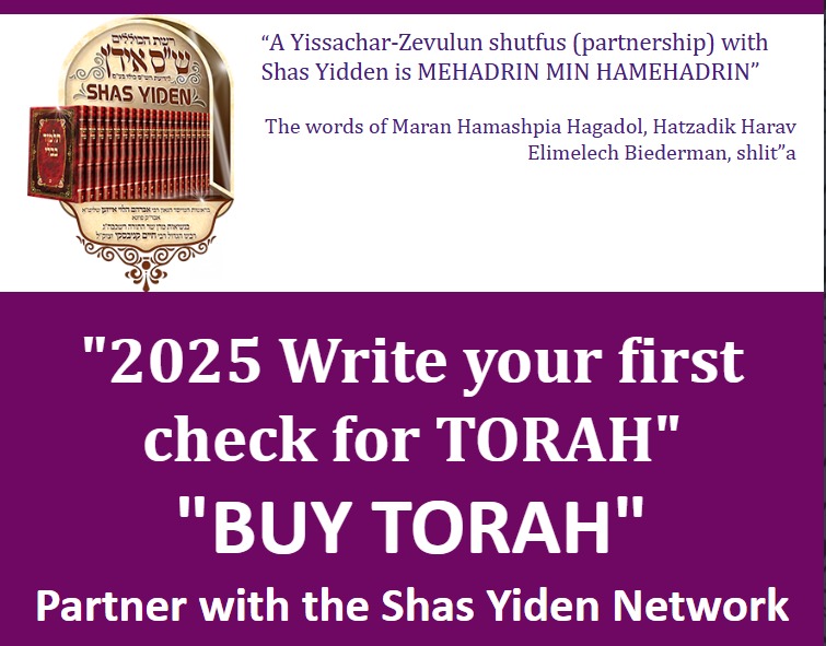 Bring endless brochos and yeshuos into your home! The 2025 calendar year is starting, and we thank you all for your generous donations to Shas Yiden throughout the year. Your support is not only