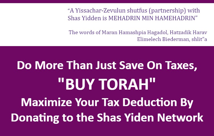 Your tax credit can bring endless brochos and yeshuos into your home! The 2024 calendar year is ending, and we thank you all for your generous donations to Shas Yiden throughout the year. Your