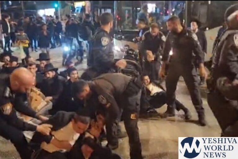Dozens of protesters from Peleg Yerushalmi blocked Jabotinsky Street in Bnei Brak on Monday evening, stretching from the Ramat Gan boundary to the Geha Junction, in response to new military
