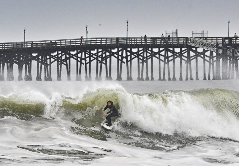 Two people were rescued when a California pier partially collapsed and fell into the ocean Monday as the state’s central coast was pounded by heavy surf from a major storm