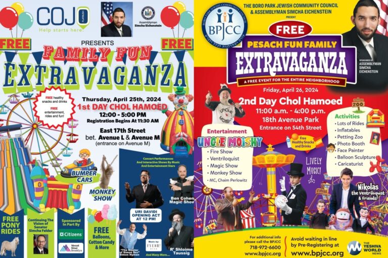 Chol Hamoed is family time, and there’s no better way to spend it than at a neighborhood Pesach Extravaganza featuring a wide variety of rides, activities, and entertainment, and all