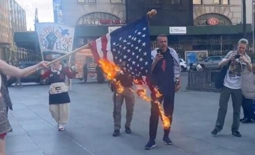 During a pro-Palestinian protest in New York City on Monday, demonstrators burned the American flag and chanted “Death to America.” Footage showed a counter-protester’s flag being set on fire and