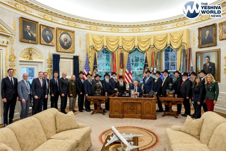 President Donald Trump and members of his cabinet hosted a delegation of 14 Chabad rabbis from across the U.S., led by Rabbi Levi Shemtov, in the Oval Office today. During