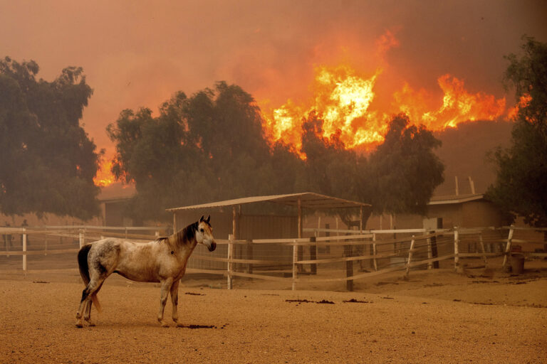 Southern California firefighters working to contain a wildfire that has destroyed 132 structures in two days could be assisted by a forecast of fierce wind gusts easing early Friday, officials