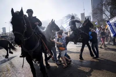 It’s both startling and humorous to see the scenes unfolding in Israel on Wednesday, as police officers beat violent, out-of-control protesters in Tel Aviv and other cities. It’s startling because