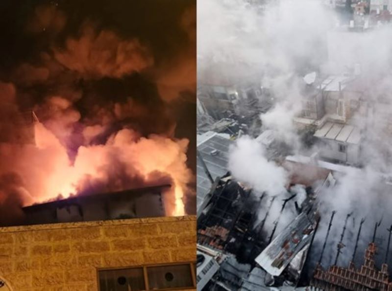 A massive fire broke out in the early morning hours of Shabbos in the Satmar Beis Medrash on Rechov Yonah in the Geulah neighborhood of Jerusalem. Nine firefighting crew worked