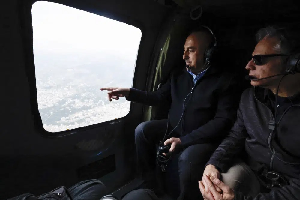 U.S. Secretary of State Antony Blinken took a helicopter tour Sunday of one of the provinces worst-affected by the Feb. 6 earthquake in southern Turkey and northern Syria and pledged