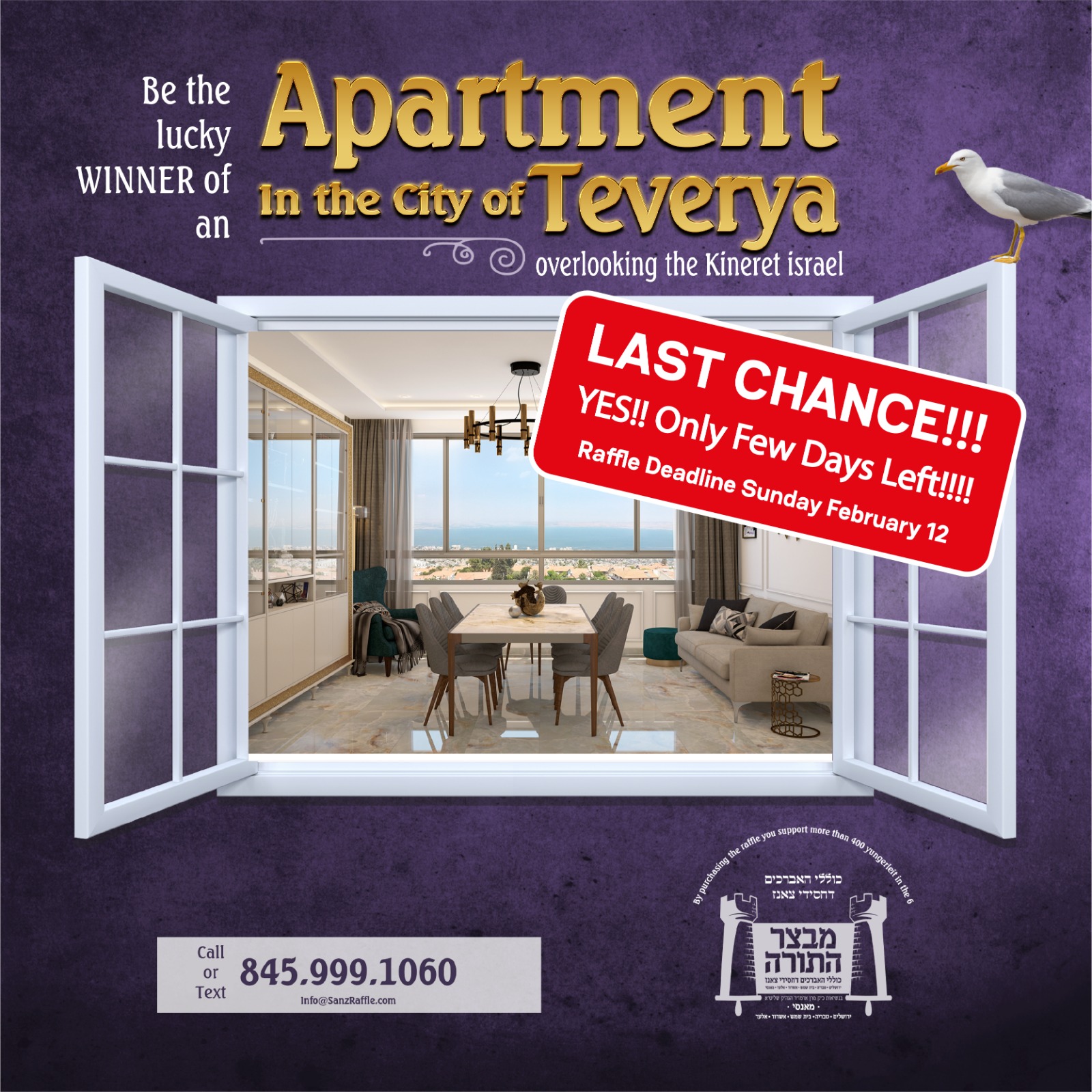 LAST CHANCE!!! Win Apartment in Teverya Israel YES!! Only Few Days Left!!!! CLICK HERE FOR A CHANCE TO WIN! CLICK HERE FOR A CHANCE TO WIN!