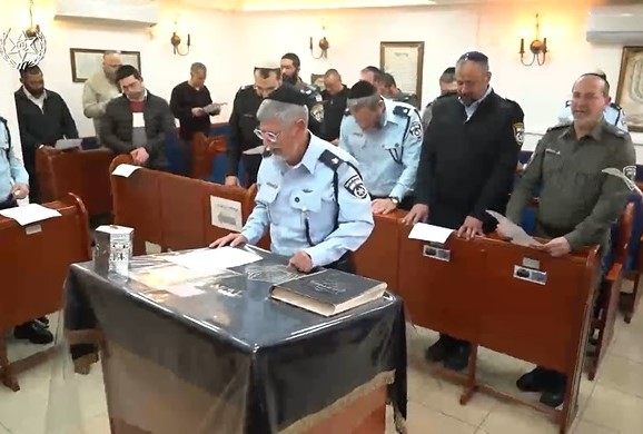 For the first time in the history of Israel Police, thousands of police officers and Border Guard officers throughout Israel stopped what they were doing to daven for the safety