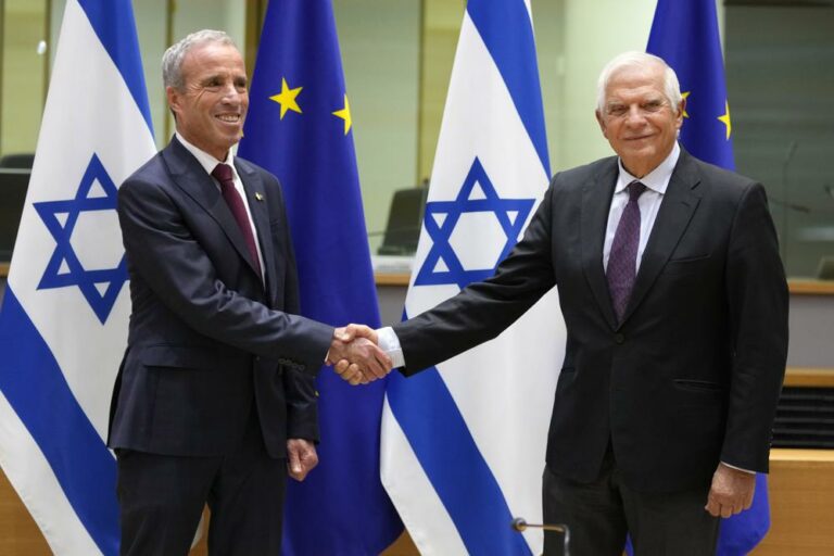 The European Union and Israel on Monday held high-level talks for the first time in a decade, with the Europeans pressing Israeli Prime Minister Yair Lapid about how to put