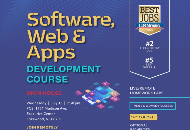 PCS/Agudath Israel Software Web Development Course Open House July 16! Are you Looking into Programing?This is your path to a Successful Career! Open House: Wednesday, July 16th at 7:30pmSoftware &