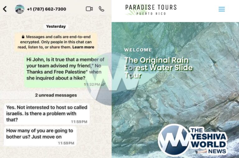 A hiking tour company based in Puerto Rico denied service to a Jewish tourist, sending a blunt email with the subject line “No thanks” and the message “Free Palestine!” —