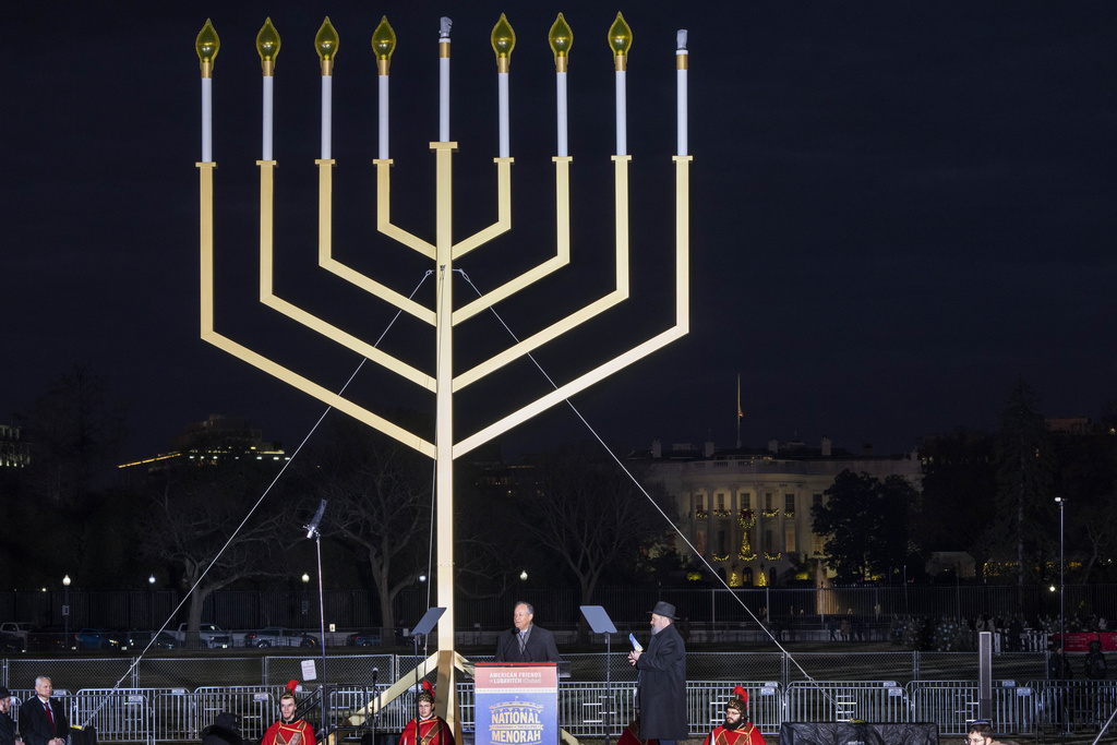 Speaking at the lighting ceremony of a massive menorah in front of the White House to mark the first night of Hanukkah, Doug Emhoff, the husband of Vice President Kamala