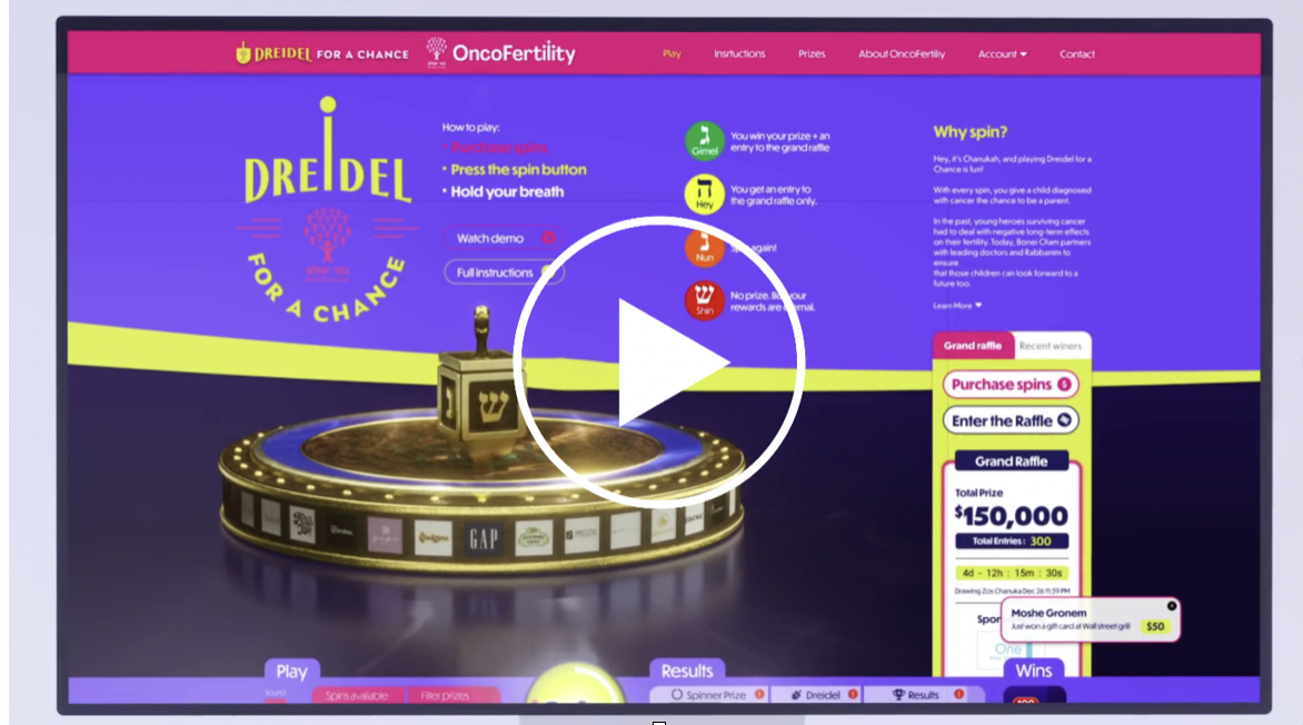 Hundreds of prizes added daily! 🎁 Spin the 🕎 Bonei Olam Virtual Dreidel and win prizes from your favorite brands. 🎉 With 1,000’s of prizes and a grand raffle for