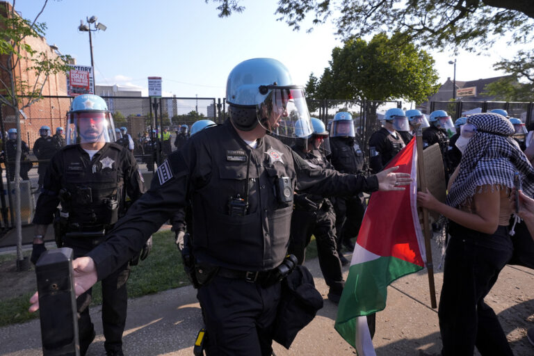 Protesters broke through a fence set up by police near the site of the Democratic National Convention on its opening day Monday as thousands took to the streets to voice