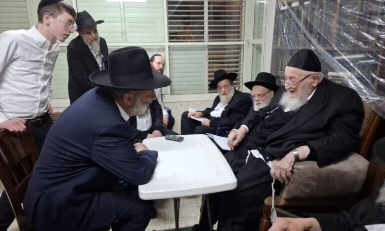 Shas chairman Aryeh Deri traveled to Bnei Brak on Thursday afternoon to be menachem avel the Rosh Yeshivah, HaGaon HaRav Meir Tzvi Bergman, on the loss of his wife, HaTzadeikis