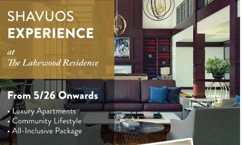 NEW! SHAVUOS GETAWAY at The Lakewood Residence GLATT KOSHER 55+ LUXURY APARTMENTS Located in the heart of Lakewood, The Lakewood Residence offers beautiful apartments that feature all the comforts of