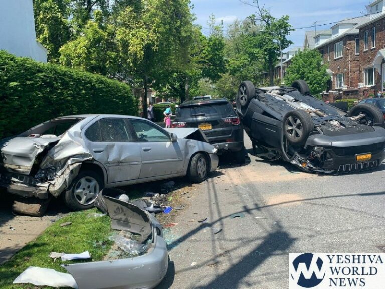 A vehicle overturned in Flatbush on Sunday morning. The accident happened at around 12:40PM on Roder Avenue near East 7th Street. Flatbush Hatzolah was on the scene in seconds. Thankfully,