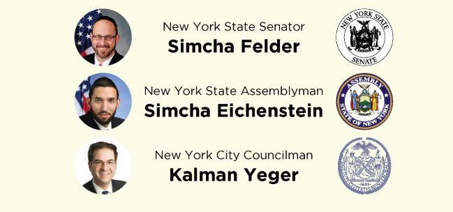 State Senator Simcha Felder, Assemblyman Simcha Eichenstein, and Councilman Kalman Yeger today jointly announced that the NYC Department of Education has agreed to provide Kosher meals for pickup at select