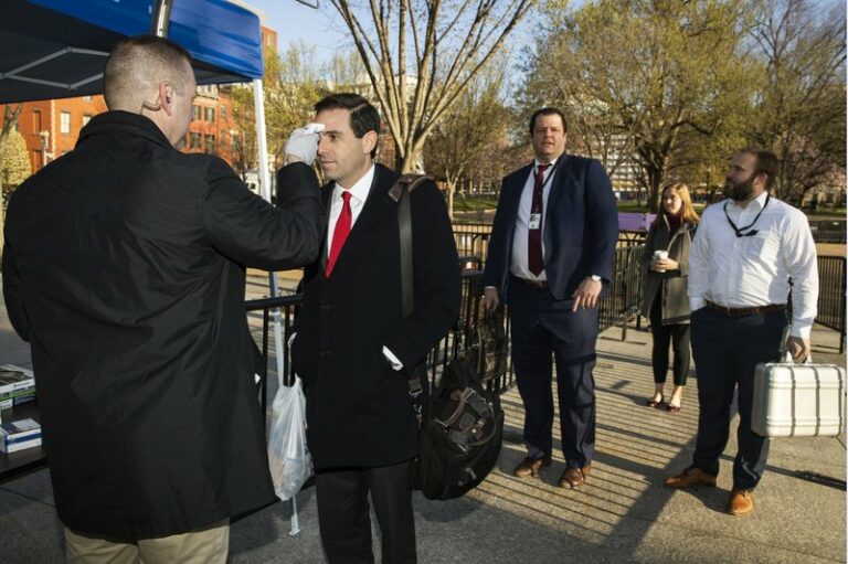 The White House put in place new measures Monday to protect President Donald Trump and his staff during the coronavirus outbreak, including taking the temperature of anyone who enters the