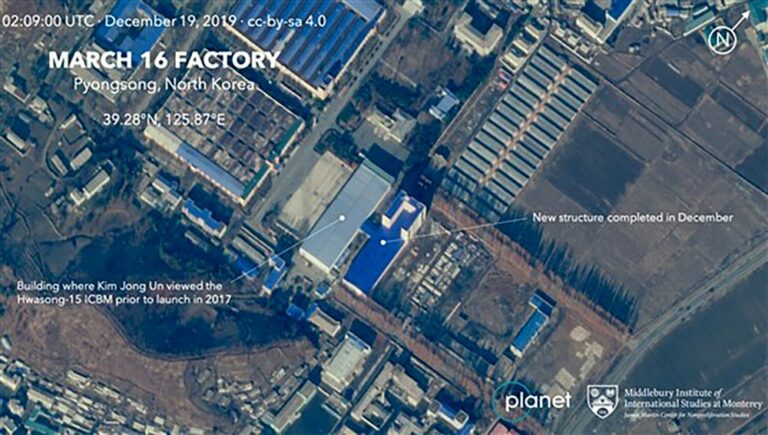 A new satellite image of a factory where North Korea makes military equipment used to launch long-range missiles shows the construction of a new structure. The release of several images