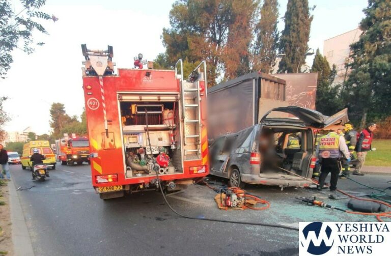 (PHOTOS IN EXTENDED ARTICLE) A horrific accident occurred on Sunday morning between a minibus and a truck near Aluf Sadeh Interchange westbound, in Ramat Gan, claiming the lives of two