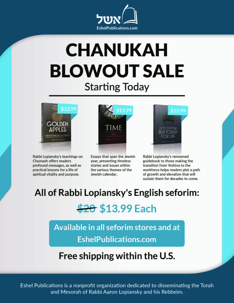 Rabbi Lopiansky’s English seforim are on sale for $13.99 each. Purchase and receive free shipping in the U.S. at https://www.eshelpublications.com/ Golden Apples: Rabbi Lopiansky’s teachings on Chumash offers readers profound messages, as well