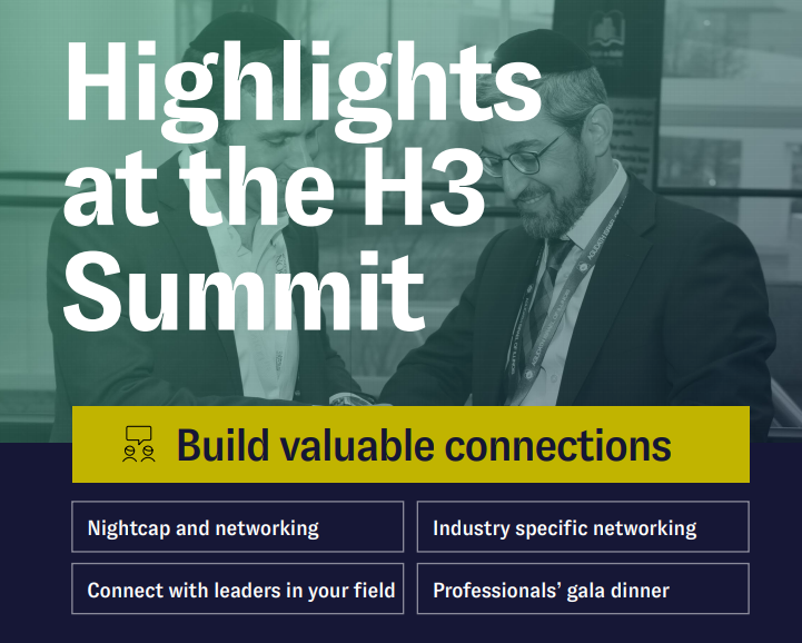 [COMMUNICATED] Network, gain valuable connections and receive personalized, applicable guidance at the multi-track 2019 H3 Summit! In today’s increasingly complex business environment, it is imperative to be aware of halachic