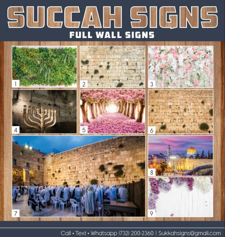 Stunning Full Wall Succah Signs and Murals! Full wall succah signs at wholesale prices! Premium quality – Waterproof! 4’x8′ = $149 — 8’x12′ = $275! We can also make any