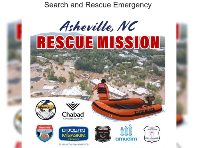 Numerous Jewish organizations are preparing to deploy to Asheville, North Carolina, to aid in search-and-rescue operations as many Jews are reported missing in the wake of Hurricane Helene’s path of