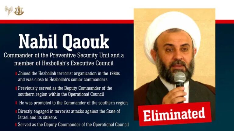 The IDF spokesperson announced on Sunday morning that a senior Hezbollah commander targeted in an overnight IDF airstrike in Beirut was eliminated in the attack. “The commander of Hezbollah’s preventive