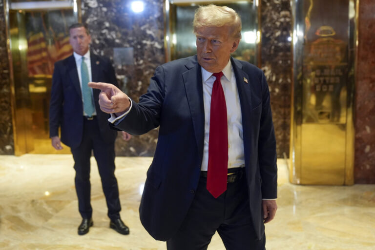 Former President Donald Trump meandered Saturday through a list of grievances against Vice President Kamala Harris and other issues during an event intended to link his Democratic opponent to illegal