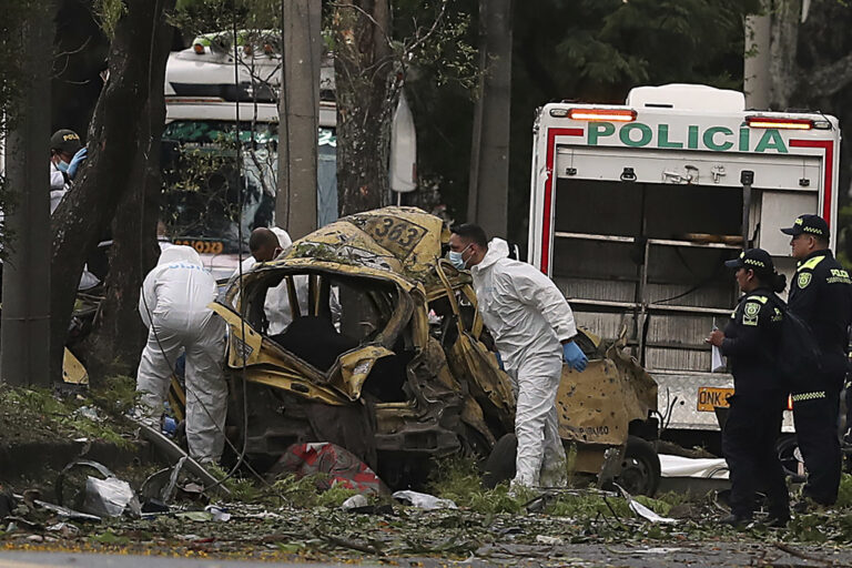 A car bomb and a separate attack on a police helicopter in Colombia killed at least 17 people Thursday, according to authorities. President Gustavo Petro attributed both attacks to dissidents