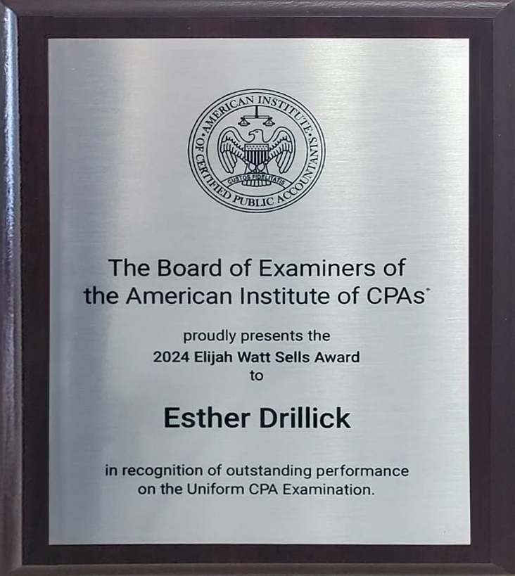 Esther Drillick is Recognized by the AICPA and NASBA with Prestigious Elijah Watt Sells Award The American Institute of CPAs (AICPA) and the National Association of State Boards of Accountancy