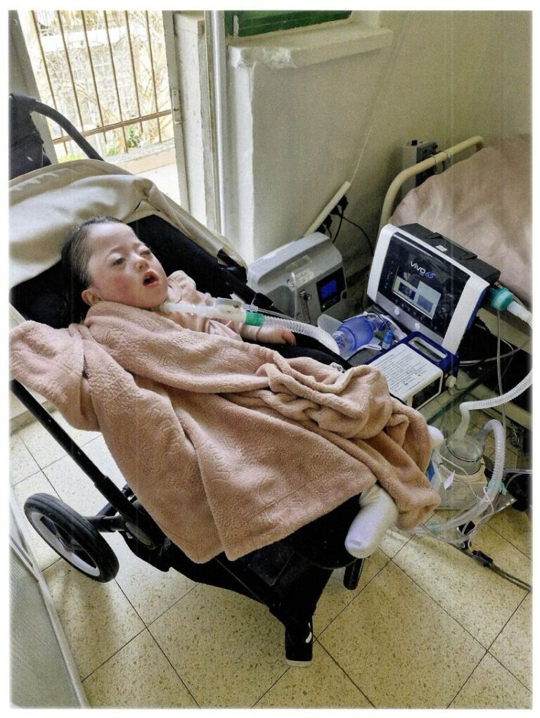 Our sweet Chaya, just 3 and a half years old, was born with severe brain damage. She can’t walk. She can’t talk. She can’t even eat on her own. Every