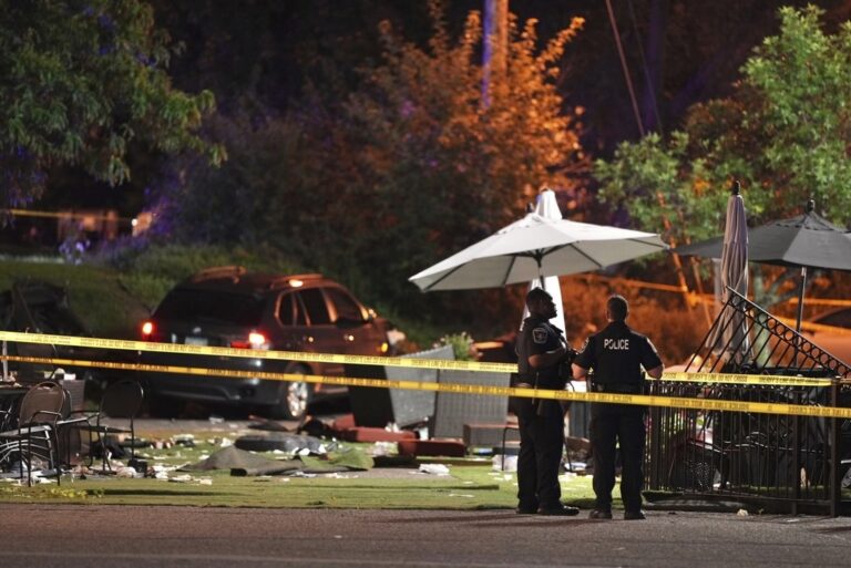 A man drove his car through a restaurant patio where a group of medical workers were celebrating in a Minneapolis suburb on Sunday, killing two of them and injuring at