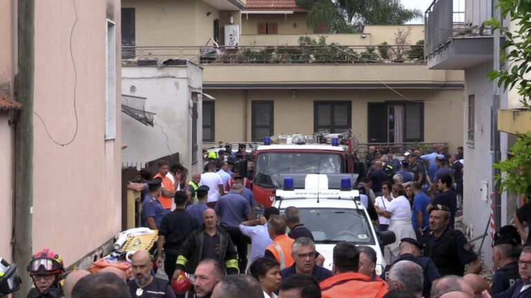 A two-story building collapsed in the southern Italian province of Naples early Sunday, killing two young siblings and their mother, while burying the children’s grandmother under the rubble, firefighters and