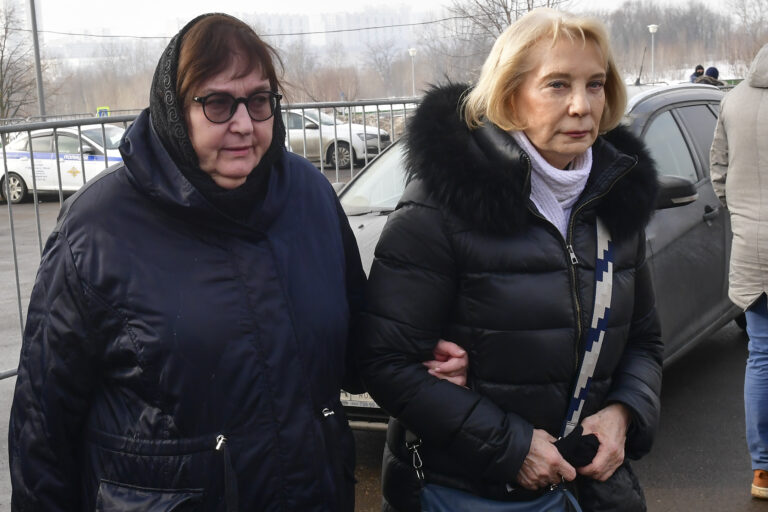Lyudmila Navalnaya and Alla Abrosimova, the mother and mother-in-law of Russian opposition leader Alexei Navalny, were among mourners who brought flowers to his grave in Moscow on Saturday, a day