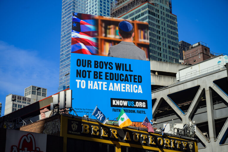 Not content to have others tell their story, KnowUs, a project of Agudath Israel of America, has erected large billboards across the Manhattan skyline. The billboards, depicting a yarmulke-wearing teen
