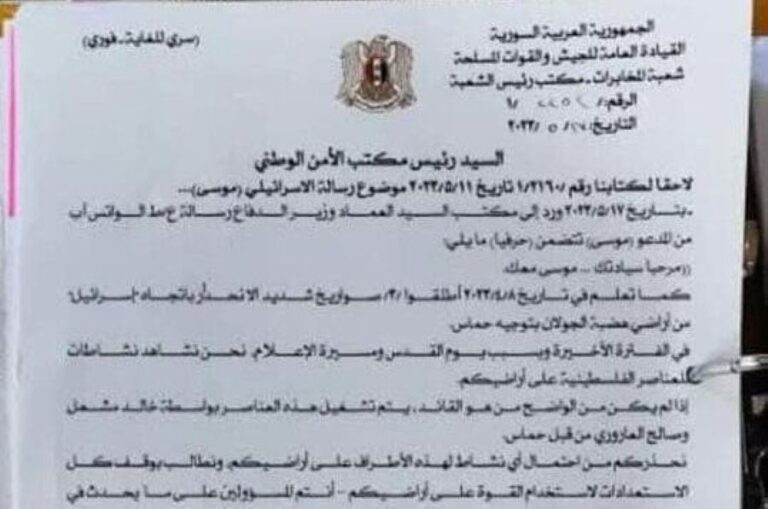 Classified documents revealed by Sky News Arabia on Wednesday indicate that Israel maintained a direct communication channel with ex-Syrian President Bashar Assad and his army through an Israeli agent nicknamed