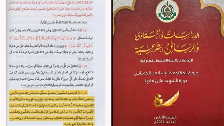 IDF Arabic spokesperson Avichay Adreaee published photos this week of a booklet of religious rulings reached by the Shura Council, the religious body that advises Hamas. Adreaee said that the