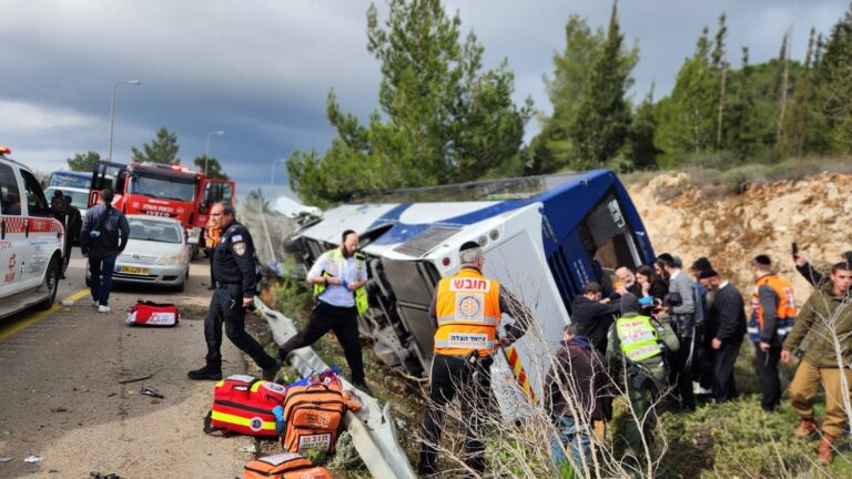 A bus on the way from Beitar Illit to Beis Shemesh was involved in an accident on Wednesday morning next to Mevo Beitar on Highway 375, causing it to veer