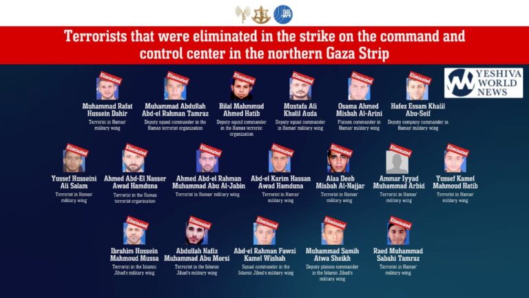 An airstrike on October 17 that targeted a former school in the northern Gaza Strip being used by Hamas and Palestinian Islamic Jihad terrorists, killed at least 18 members of