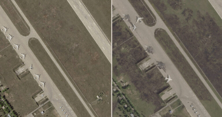 Satellite photos analyzed by The Associated Press on Wednesday showed seven destroyed bombers on the tarmac at a Russian air base in eastern Siberia, one of the targets Ukraine said
