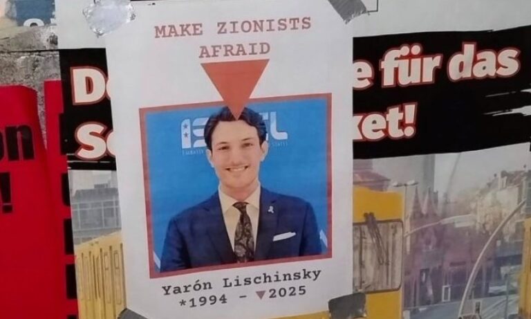 An antisemitic poster seen at Humboldt University in Berlin on Friday caused a furor of outrage in Germany, Kan News reported. The poster featured a picture of Yaron Lischinsky, who