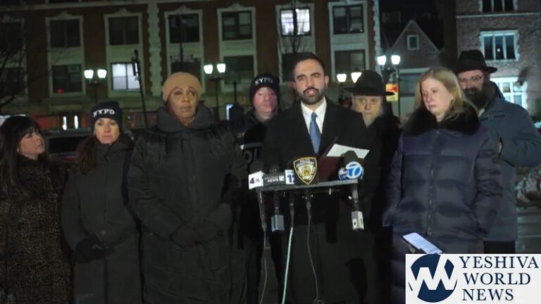 NYC Mayor Mamdani and NYPD Commissioner Jessica Tisch spoke outside Chabad World Headquarters at 770 Eastern Parkway following Wednesday night’s car-ramming incident. Mayor Mamdani noted that today marks the yahrtzeit