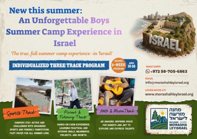 🇮🇱 An Unforgettable Boys Summer Camp Experience in Israel! A true full summer camp — adventure, growth, and inspiration in Eretz Yisrael. 6-week program | Ages 10–16 | 3 tracks