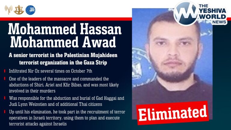 The IDF and Shin Bet have successfully eliminated Mohammed Hassan Mohammed Awad, a senior military commander in the Palestinian Mujahideen terrorist organization. He is believed to have personally overseen the
