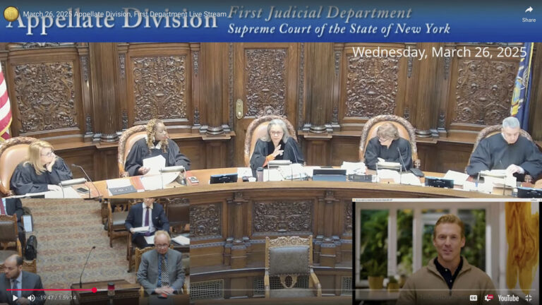 It took only seconds for the judges on a New York appeals court to realize that the man addressing them from a video screen — a person about to present