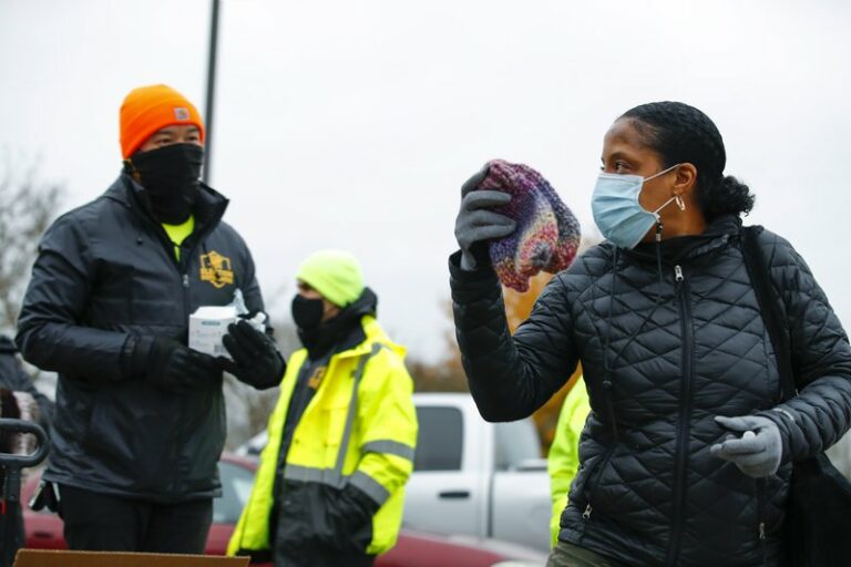 In the first week of early voting for Georgia’s Senate runoff election, Casie Yoder parked at a polling location in Cobb County and loaded miniature hand sanitizer bottles, knitted hats,